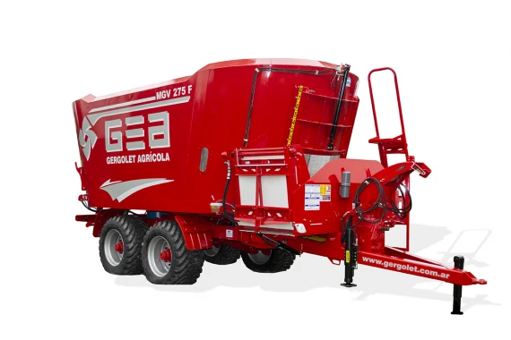 Mezclador y distribuidor de raciones de tipo vertical de 14 m3 de capacidad. El mezclado se produce por un sinfín cónico de paso variable de tipo vertical. Está dotado de cuchillas que permiten el desmenuzado de rollos y fardos prismáticos. La descarga es a través de noria. Totalmente comandado desde el tractor.
